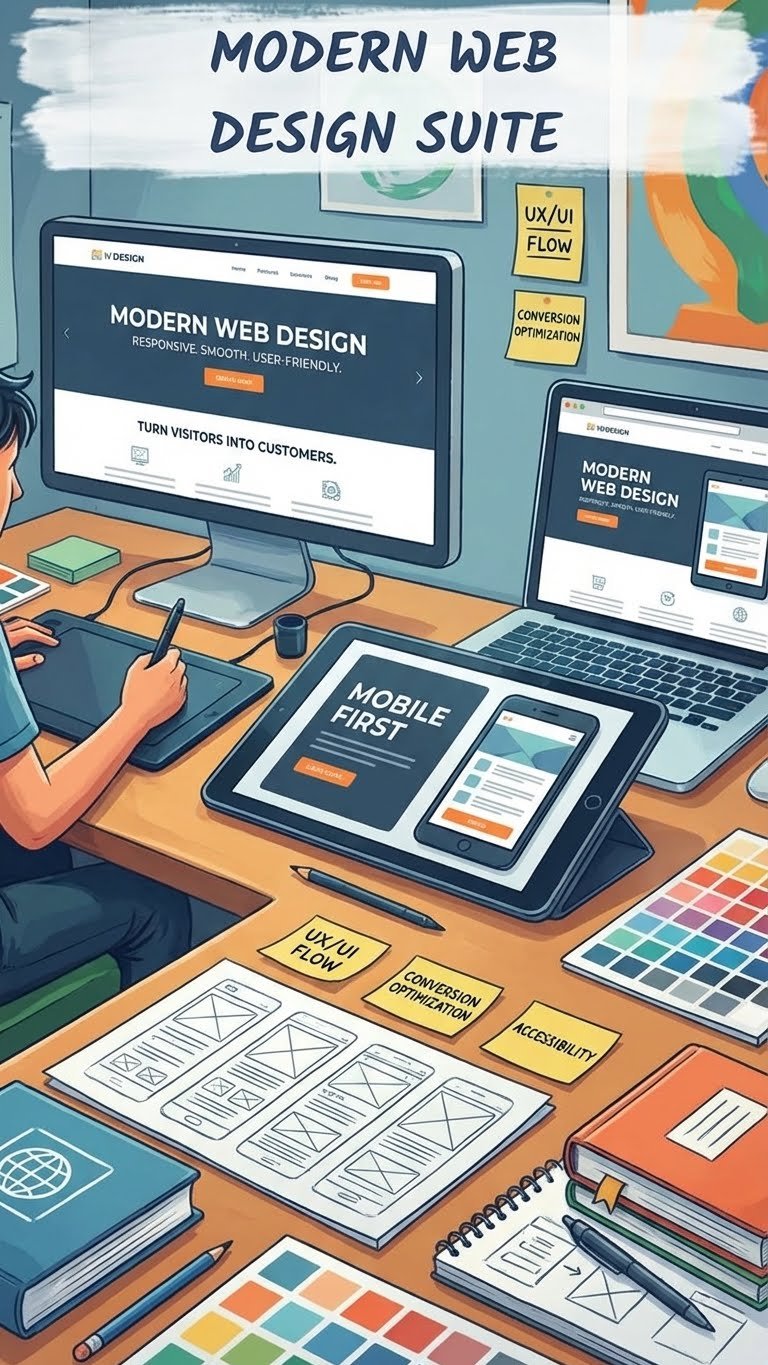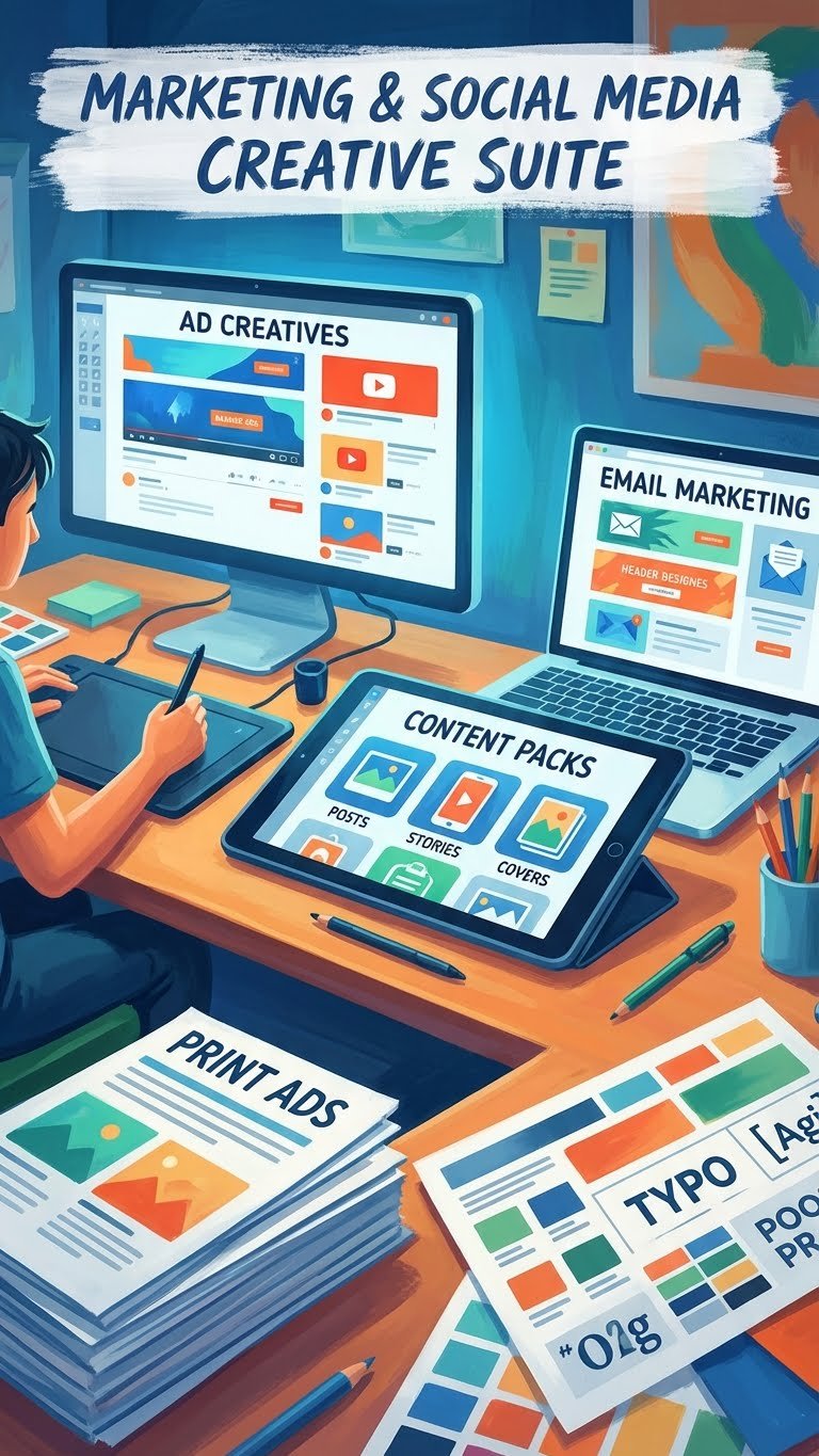 Brand KitComplete brand identity packages that include logos, color palettes, typography, graphic elements, and brand guidelines.Professional Logo DesignCreation of professional and unique logos that capture the essence of your brand and make it memorable for your customers.Modern Web DesignDesign of modern, responsive websites that turn visitors into customers by offering a smooth, attractive, and user-friendly browsing experience.Short VideosCreation of short promotional videos: dynamic and engaging pieces for social media and online ads, designed to capture attention in seconds and boost your sales.Print and packagingCreation of business cards, flyers, brochures, catalogs, posters, and roll-up banners, as well as packaging and label design for products, including realistic mockups tailored for online stores.Marketing and social mediaCreation of complete social media content packs (posts, stories, covers, and ad creatives) for launches or monthly retainers, plus advertising design (banners, display ads, YouTube thumbnails, and print ads) and email marketing graphics, including headers, layouts, and promotional images.